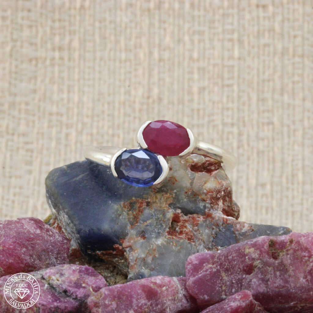 Ruby and sapphire ring 0.74ct 0.70ct 925Silver