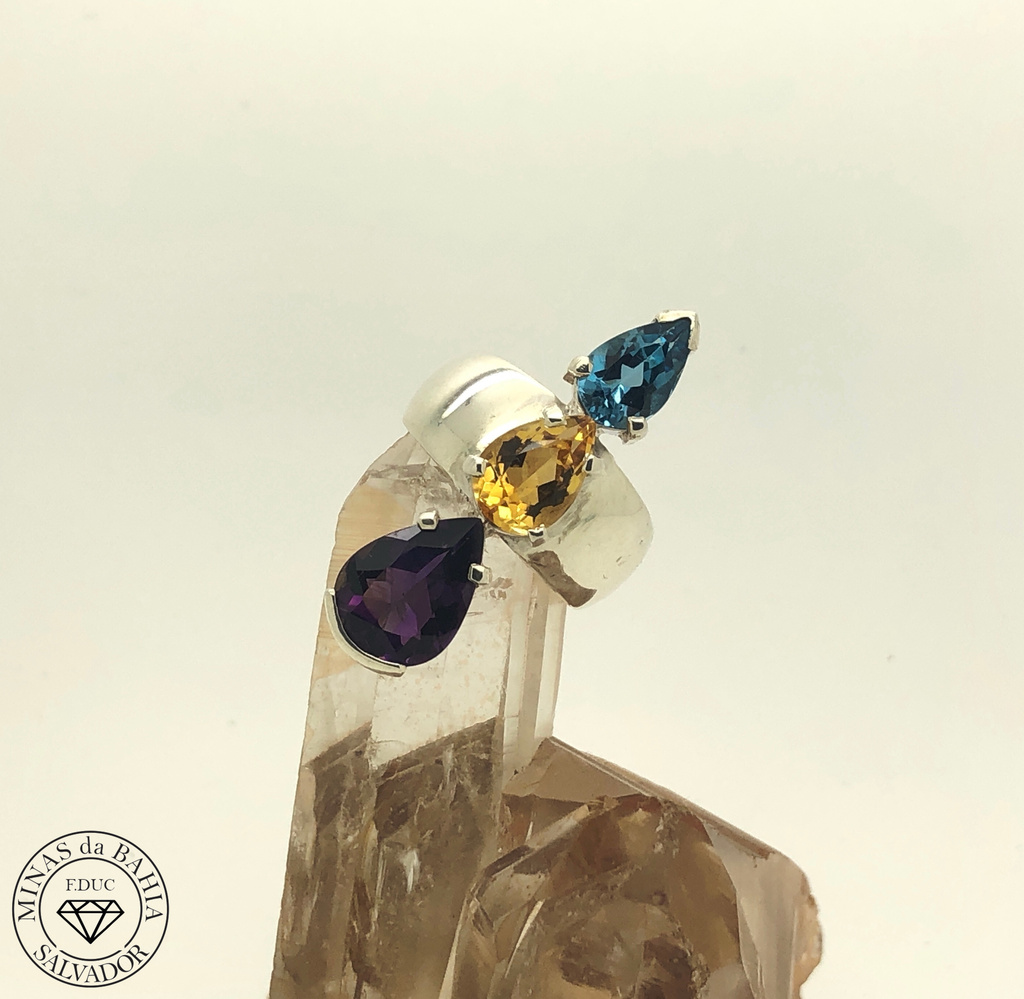 Amethyst, citrine and blue topaz ring