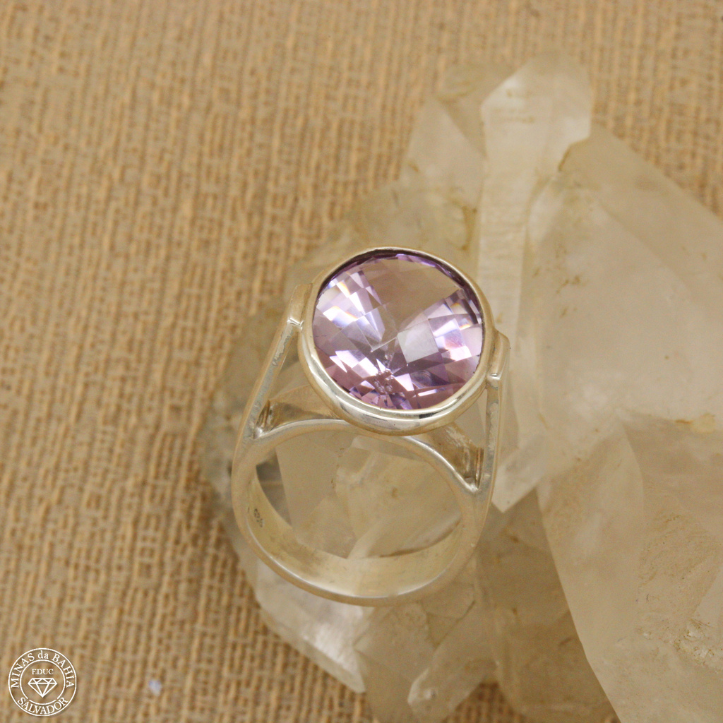 Em alta na moda. Anel moderno de ametista clara da Bahia.