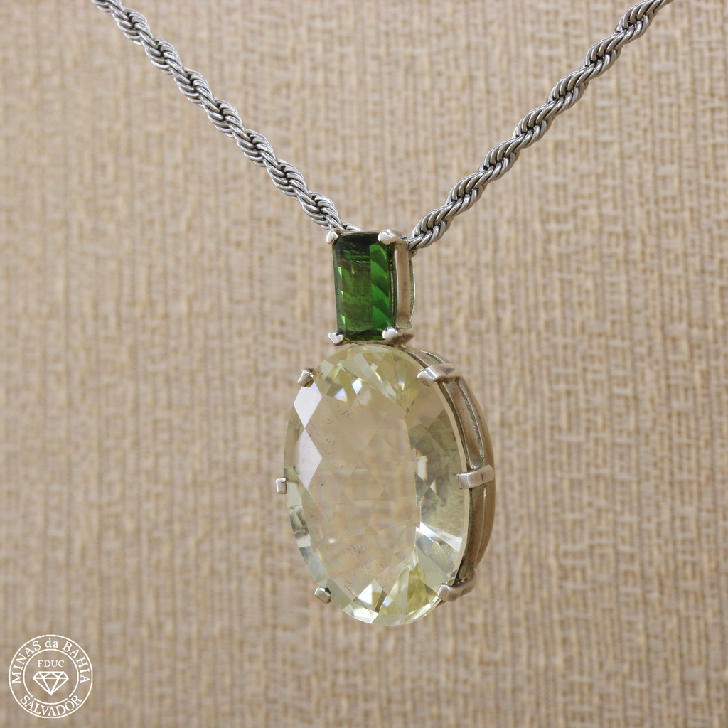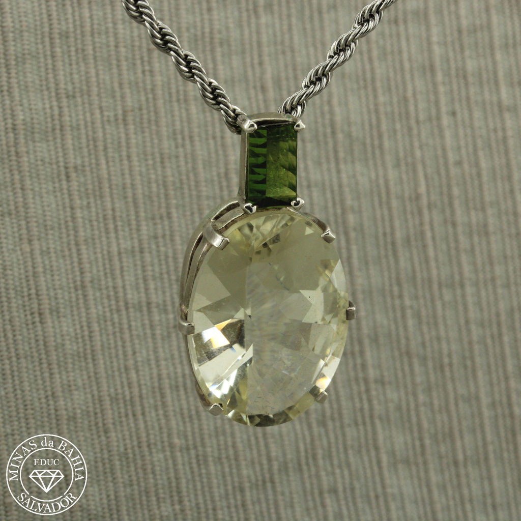 Citrino natural espetacular e imponente. Turmalina verde lapidação millenium.